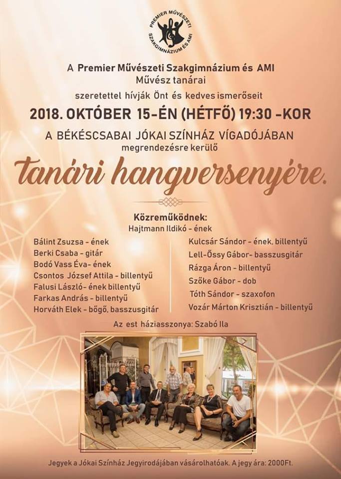 Szalagavató ünnepség a Premier Művészeti Szakgimnázium és AMI Budapesti Tagintézményében 2019.02.01. Oldalak Magyar Pünkösdi Egyház segítségével vendéget fogadtunk Finnországból a Premier Művészeti Szakgimnázium és AMI Budapesti Tagintézményében Lencsési Premiereseink sikerei Isaszegi Szobor hegyi megemlékezés 2018. október 23. Pályaválasztási napok Szegeden OKTÓBER 23-ai megemlékezés a Budapesti Tagintézményben Tanári hangverseny Békéscsabán 2018.10.15. Zenei Világnap – 700 csemete előtt szerepeltek a Premieres diákok. Aradi vértanúk megemlékezés a Szegedi Tagintézményben