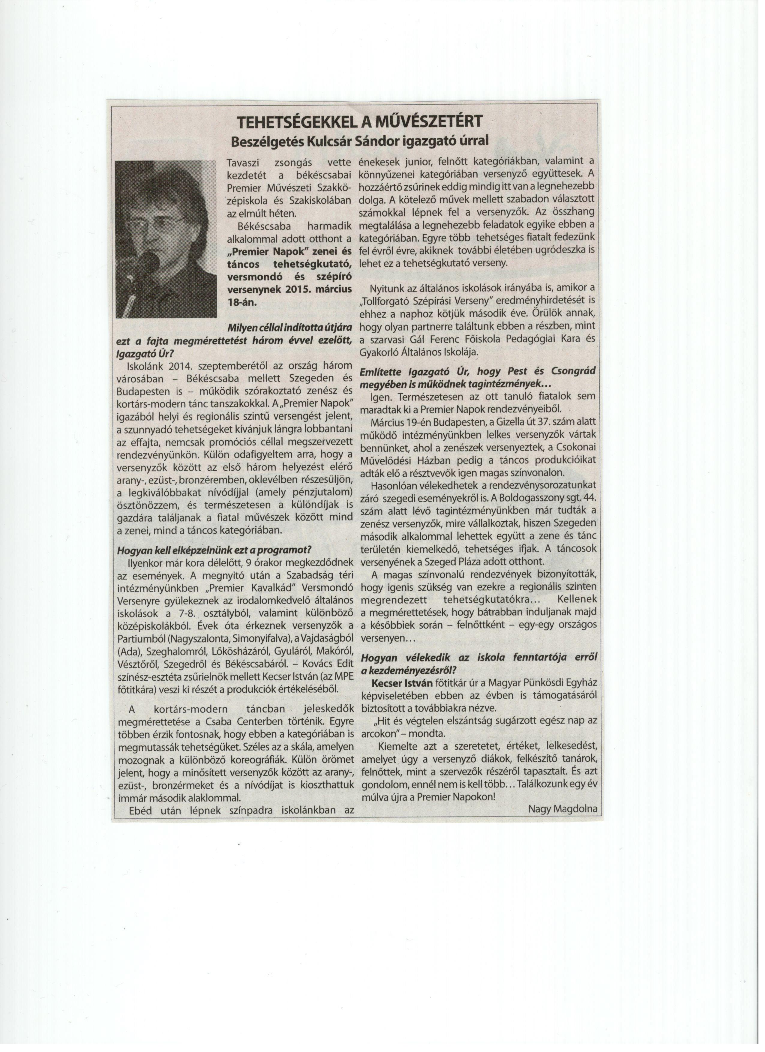 - Összefoglaló interjú „Együtt egymásért a tánc és zene világában”